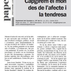 Subscripció al butlletíDesprés de trenta-cinc anys, Cristianisme i Justícia arriba al quadern número 200. La nostra intenció ha estat sempre la d’oferir un relat esperançador que alimenti l’aspiració, compartida per molts, d'un món més just i fratern. Fidels a aquesta aspiració i a una realitat que ens interpel·la, el present quadern vol ser un clar reflex del treball en equip que caracteritza el nostre centre i una bona guia d'aquells reptes que marcaran la reflexió present i futura de Cristianisme i Justícia.
