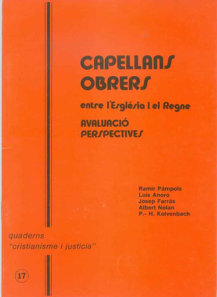 La lectura apassionant i apassionada d’aquests testimonis, tot i ser molt diversos ja que són personals, ens acosten molt millor a la realitat que qualsevol reflexió teòrica. Per això, aquest quadern completa el que es va publicar en el nº 17 d'aquesta mateixa col·lecció: Capellans obrers. Entre l’Església i el Regne. Els tres itineraris personals -Manolo, Sisco i Ramiro- conflueixen en uns trets comuns que són com el substrat més profund del seu testimoni de fe dins del món obrer. Un món que, tot i estar vivint crucialment profundes transformacions a causa de les noves tecnologies, ens interpel·la com a persones i com a creients amb una pregunta com la que els treballadors d’Euskalduna, en una lluita recent, escrivien al sostre de les immenses naus desertes: “On ets, justícia?”.