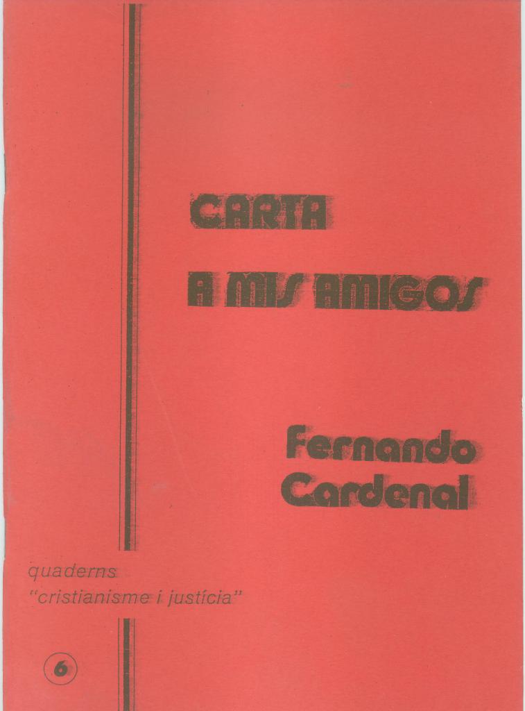 [quadern publicat només en castellà]El centro Cristianisme i Justícia había decidido desde el principio del curso, a propósito la situación de Nicaragua, preparar un estudio sobre la presencia, en casos de excepción, de sacerdotes en la política, en el cual expondría su posición sobre el tema. Mientras tanto llegó al centro un documento público donde el P. Fernando Cardenal explicaba sus razones respecto a su objeción de conciencia. Por su significación se creyó que podía interesar a nuestros lectores y que ofrecía elementos de juicio en un tema que a todos resulta doloroso en nuestra Iglesia.Descárgate el cuaderno aquí