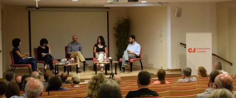 L'acte de celebració va comptar amb la participació de quatre persones convidades, buscant complicitats a casa nostra però també en l’àmbit internacional. Els jesuïtes Giuseppe Riggio, director de la revista Aggiornamenti Sociali i col·laborador del Centre San Fedele de Milà, i Francisco Mota, responsable del centre Brotéria a Lisboa van ajudar a situar què representa avui treballar des de la perspectiva del diàleg fe-cultura-justícia en la Companyia de Jesús. En l’entorn més proper, Montse Santolino, responsable de comunicació a Lafede.cat i Laura Mor, directora de Catalunya Religió, van situar el context que ens trobem a casa nostra en l’àmbit social i el religiós, respectivament.