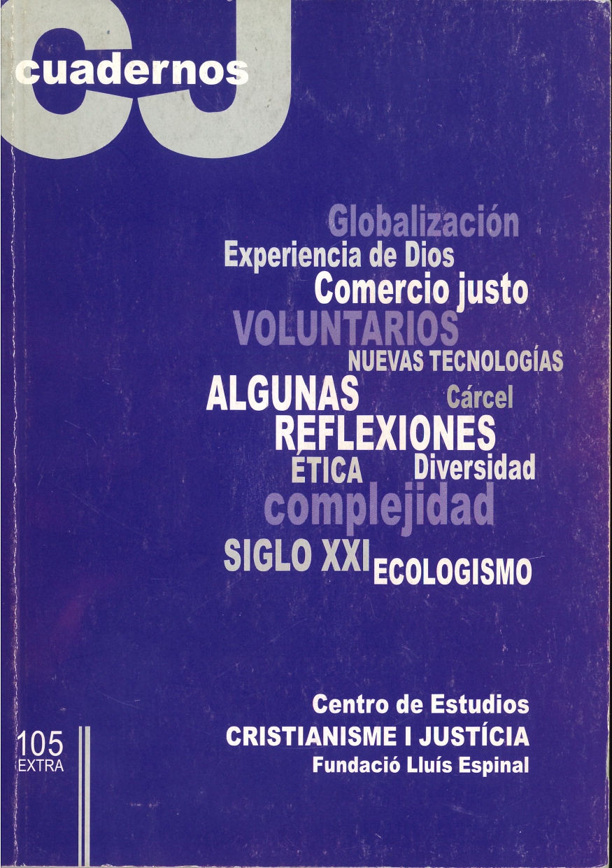 Vivimos un cambio de milenio apasionante: nuestro mundo se extiende entre la ultramodernidad de los medios de comunicación, y las tragedias (tan antiguas como la humanidad) de la guerra y la pobreza de todo tipo. Un mundo cada vez más unificado e interconectado por la omnipresencia de los medios de comunicación y que, al mismo tiempo, nos resulta más complejo y disgregado. Un mundo lleno de posibilidades hasta hace poco sólo soñadas, pero que no es capaz de dar ni lo más imprescindible a millones de personas. De este mundo, de sus tragedias y de sus posibilidades, trata el cuaderno que tiene en sus manos. En el ofrecemos un resumen de una parte del trabajo de reflexión que se propuso el Centro el curso pasado. Quiere ser una palabra entre tantas palabras de nuestra sociedad que ayude a hacer un poco más presente la Utopía del Evangelio en nuestro mundo.