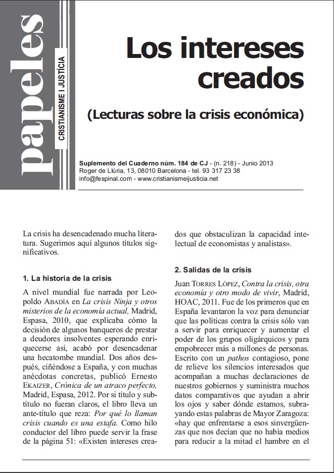 Papeles #218 Los intereses creados (Lecturas sobre la crisis económica)
