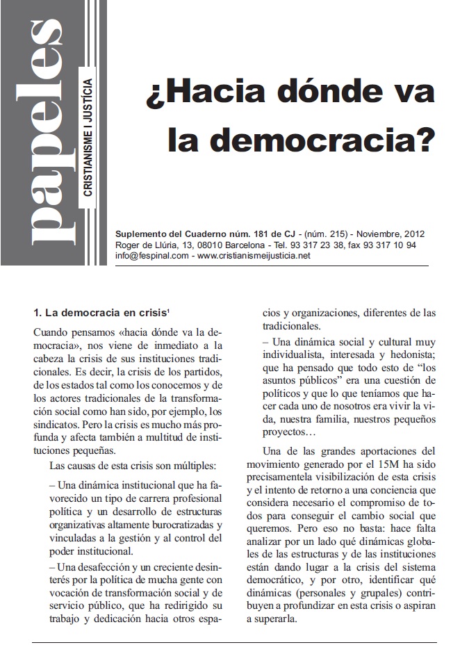 Cuando pensamos “hacia dónde va la democracia”, nos viene de inmediato a la cabeza la crisis de sus instituciones tradicionales. Es decir, los partidos, los estados tal como los conocemos y los actores tradicionales de la transformación social, como por ejemplo, los sindicatos. Pero la crisis es mucho más profunda y es precisamente de esta profundidad de la que habla este papel.