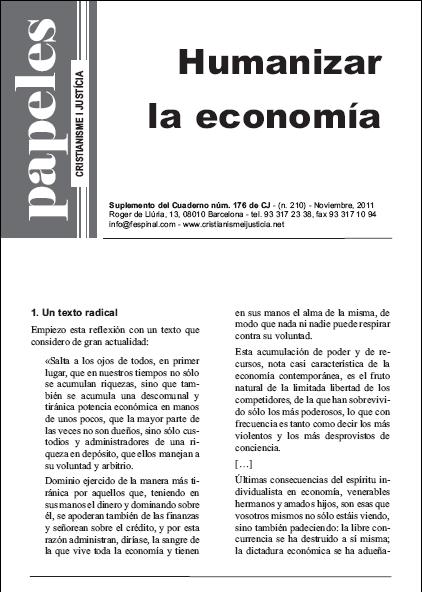 La doctrina social de la Iglesia ha sido siempre muy crítica con determinados aspectos del sistema económico capitalista manifiestamente abusivos e injustos. Es necesario recuperar esta enseñanza moral precisamente en un momento en que la humanización de la economía es una cuestión inaplazable.