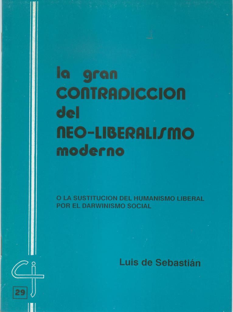 La tesis que el autor defiende en este cuaderno es que el fenómeno social e ideológico conocido en nuestros tiempos como neo-liberalismo no se parece en nada al liberalismo económico clásico de los autores de la Economía Política Británica de los siglos XVIII y XIX; antes bien, es un movimiento opuesto a los ideales, motivaciones y objetivos económicos y sociales que tuvo aquél. El término neo, añadido al de liberalismo, resulta de hecho equivalente a no liberalismo. En palabras del autor: “Para mí, el neo-liberalismo es no-liberalismo, es la negación del liberalismo. Esto lo voy a demostrar mostrando que la ideología “neo-liberal” de nuestra época es darwinismo social, la doctrina que exalta la necesidad y conveniencia para el conjunto de la sociedad -y de la especie humana- de que algunos miembros de ella, los mejor dotados y capacitados para la competencia económica, tengan todas las oportunidades de triunfar y sobrevivir en el enfrentamiento de los hombres contra la naturaleza y de los hombres entre sí por mantener el control sobre los recursos creadores de riqueza. Por su propia descripción se hará evidente que el darwinismo social es conceptualmente contradictorio y prácticamente incompatible con los valores que promovía o intentaba promover el liberalismo tradicional”.