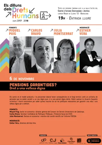 Els canvis en el model productiu i la precarietat laboral tenen conseqüències en el llarg termini: amb un col·lectiu de persones que no poden accedir a un sou digne avui, ni a una pensió digna demà. Volem avaluar la situació d’aquests col·lectius i treure conclusions per saber quines haurien de ser les polítiques necessàries per garantir una vida i una vellesa digna per a tothom.