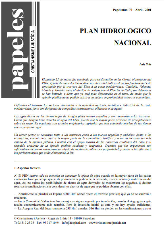 Papeles #70 Plan Hidrológico Nacional