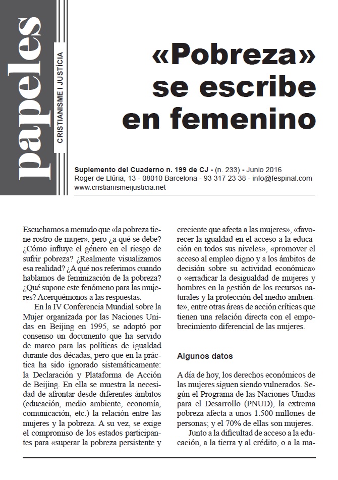 La feminización de la pobreza ha estado escondida durante mucho tiempo ya que, cuando se analizaban las situaciones de pobreza o exclusión social, no se incluía la variable de género. La dificultad de acceso a la educación, a la tierra y al crédito, o a la más gran precariedad y vulnerabilidad en el mercado laboral, son factores que contribuyen al empobrecimiento de las mujeres y a afirmar que «la pobreza tiene rostro de mujer». Hay que dar visibilidad a este fenómeno y entender como el género influye en el riesgo de sufrir pobreza.