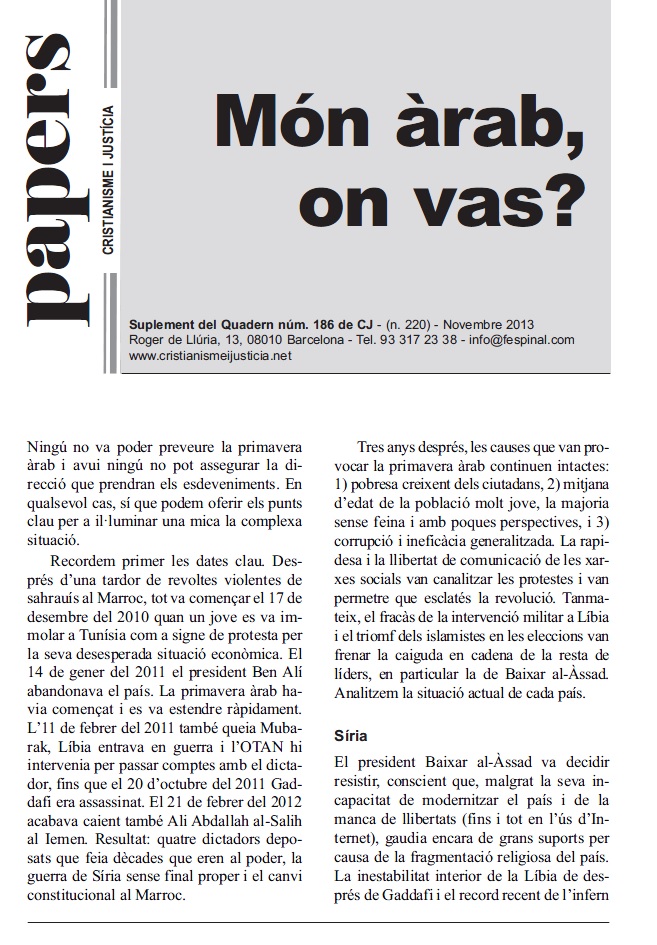 Ningú no va poder preveure la primavera àrab i avui ningú no pot assegurar la direcció que prendran els esdeveniments. En qualsevol cas, sí que podem oferir els punts clau per a il·luminar una mica la complexa situació, tenint en compte que tres anys després, les causes que van provocar les revoltes continuen intactes.