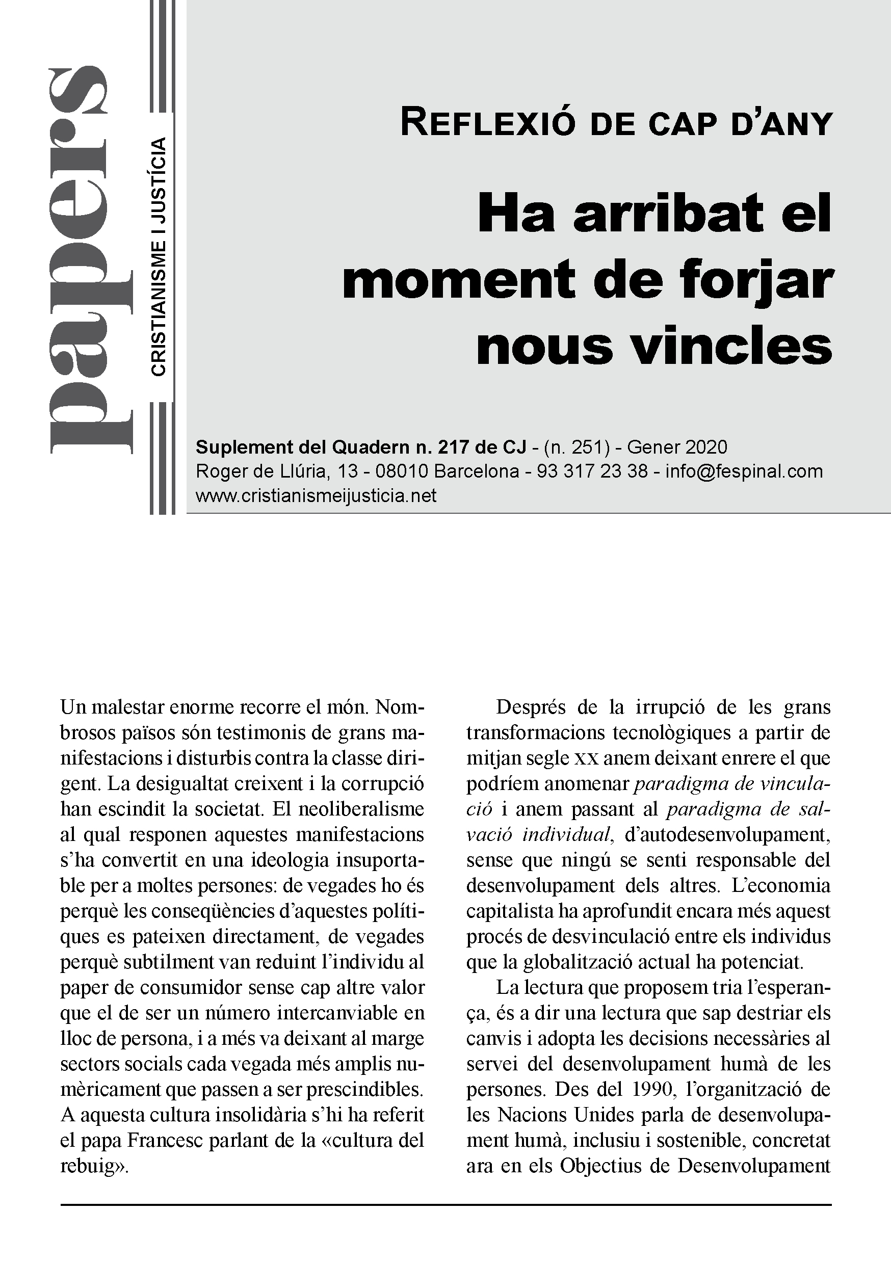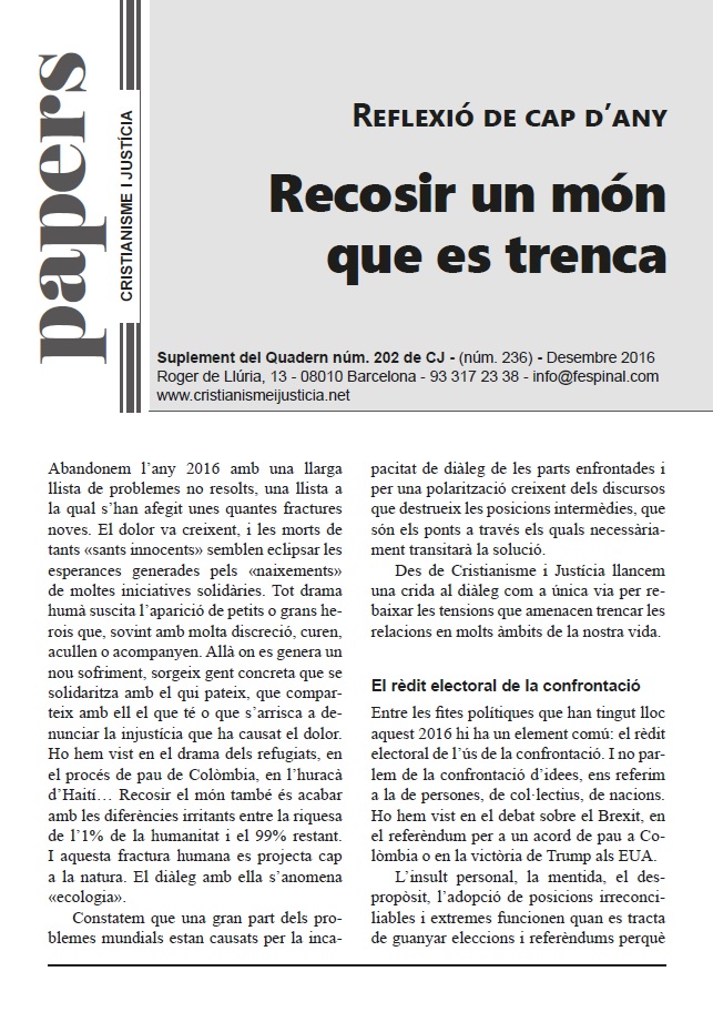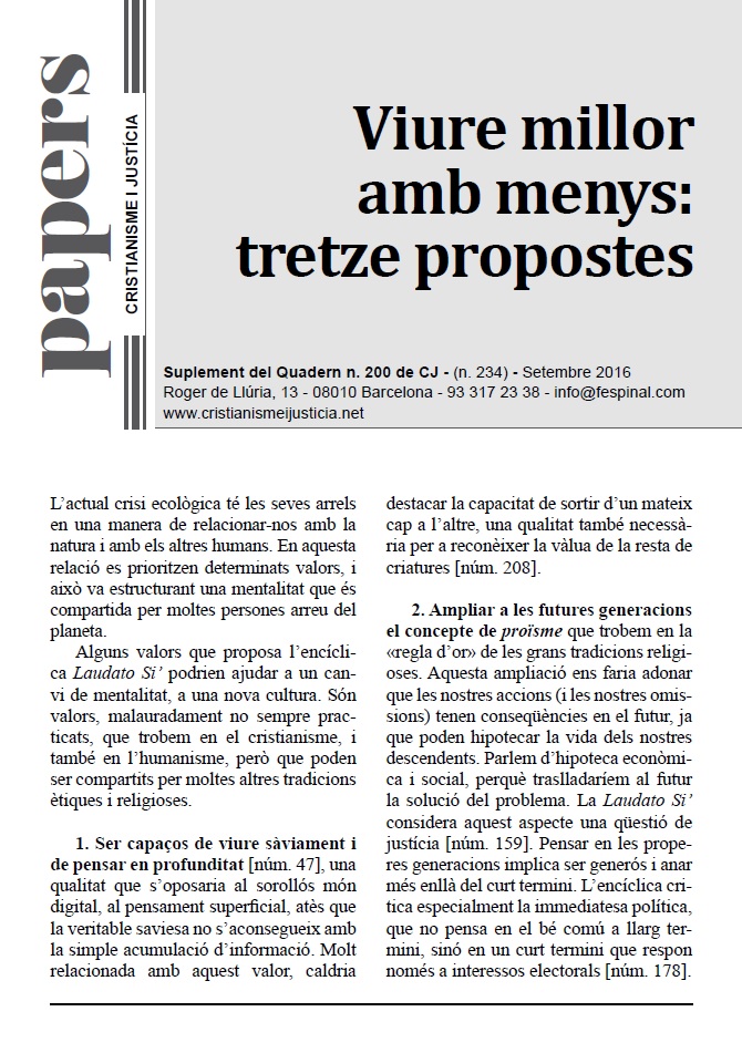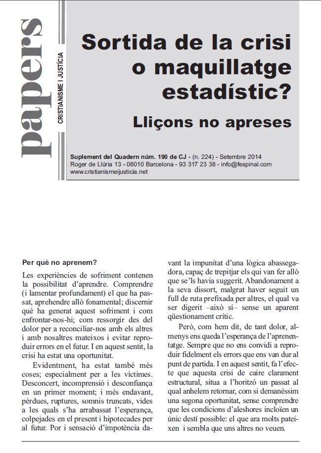 En un format breu i fàcil de llegir es sintetitza la presentació d’un tema d’actualitat. Els Papers més que oferir respostes tancades pretenen despertar en el lector l’interès per seguir buscant i reflexionant. Entenent però, que la brevetat no va renyida ni amb el rigor ni amb la profunditat.